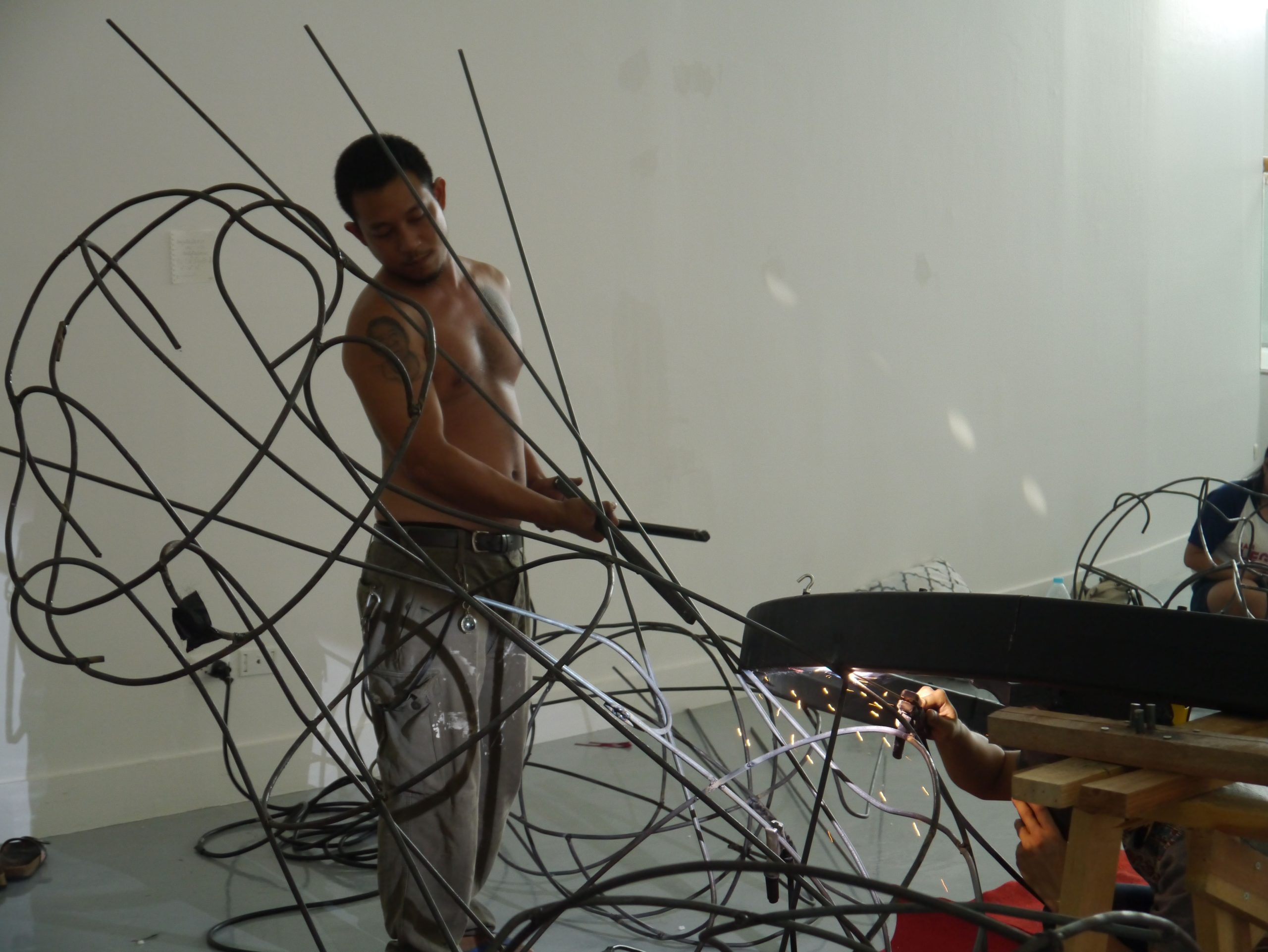 This transformation was created by the collective effort of 25 Thai assistants who took the construction to a new level through the fabrication of the structure and intense wrapping of ribbon around 1000 links of metal.