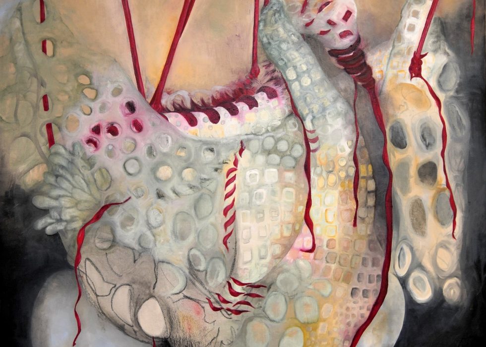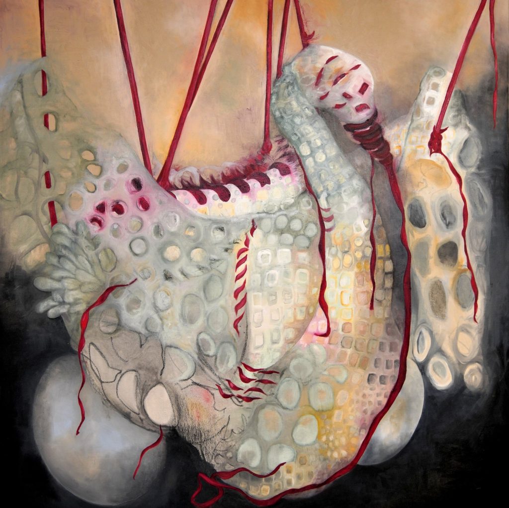Materials – fur, fabric, steel, ribbon, rope, underwear and found objects – contrast soft with hard, warmth with coldness, and the precious with the disposable. Intuitively formed, my work bridges both conceptual and formal art practices. Recently, I have expanded these ideas into oil painting, aiming to seduce and overpower the viewer, blurring the boundaries between two and three dimensions.