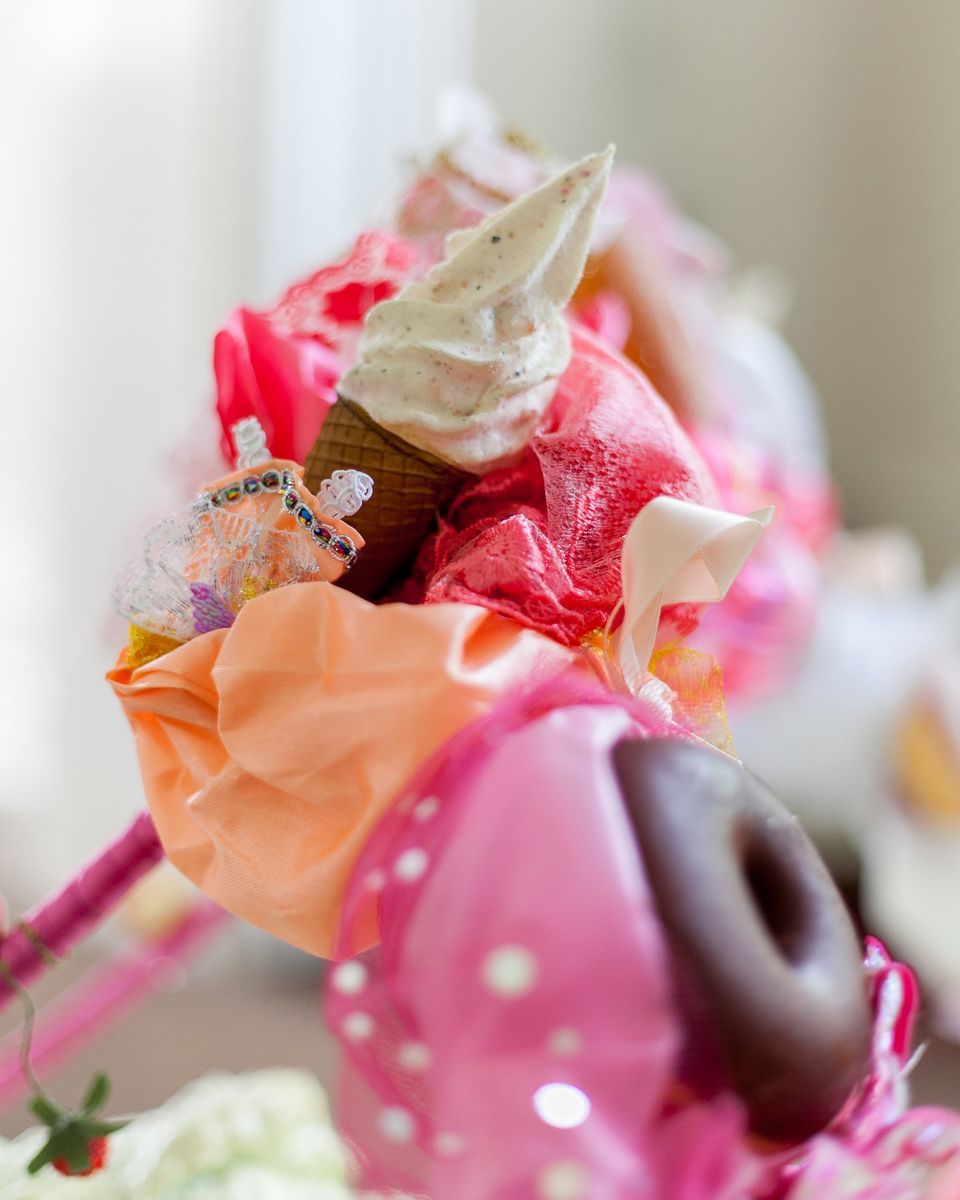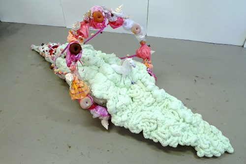 This sculpture contrasts the nurturing safe and fragile world of early childhood with the enticing, tempting fantasy of growing up and its more sober reality.