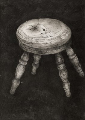 This wooden stool is artist Clare Charnley’s favourite object. It has a sticker in French to help her improve her French vocabulary.
